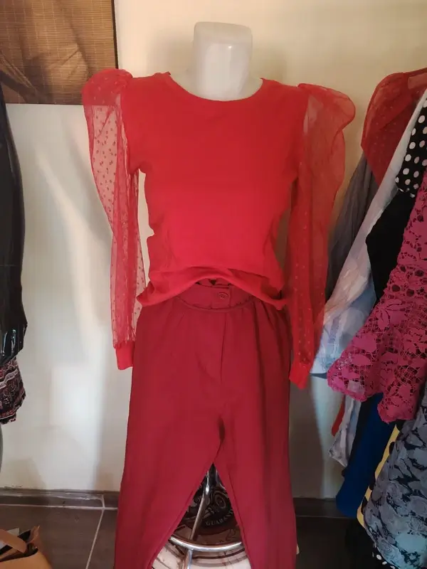 Piros felső különleges megoldásu ujjal L méret